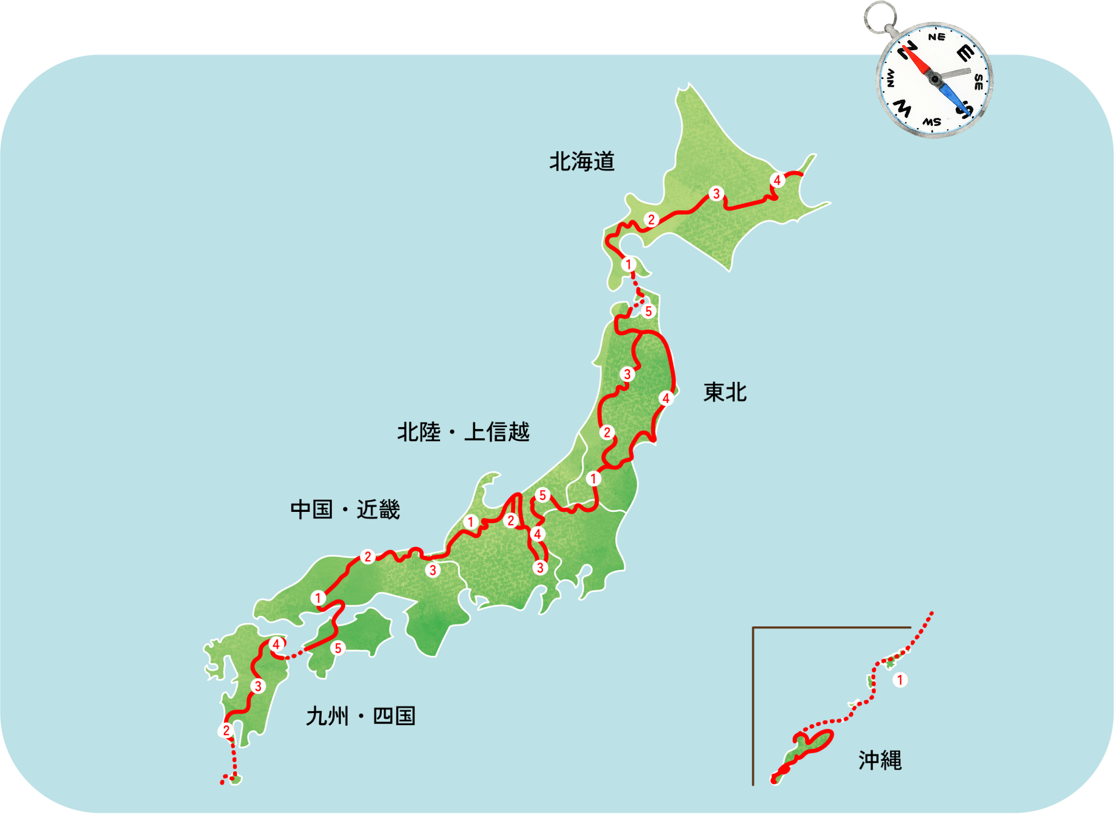 *JAPAN TRAILは順次、通行可能な暫定ルート(構想としての第1次ルート案)を地図上に表示していきます。暫定ルートは適宜増やしていきますので、ご確認の上ご利用ください。